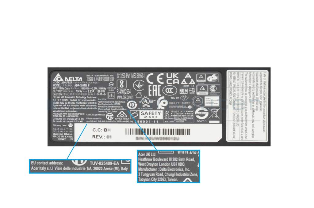 Acer Nitro XV272UX AC-adapter 180.0 Watt slim from Delta Electronics