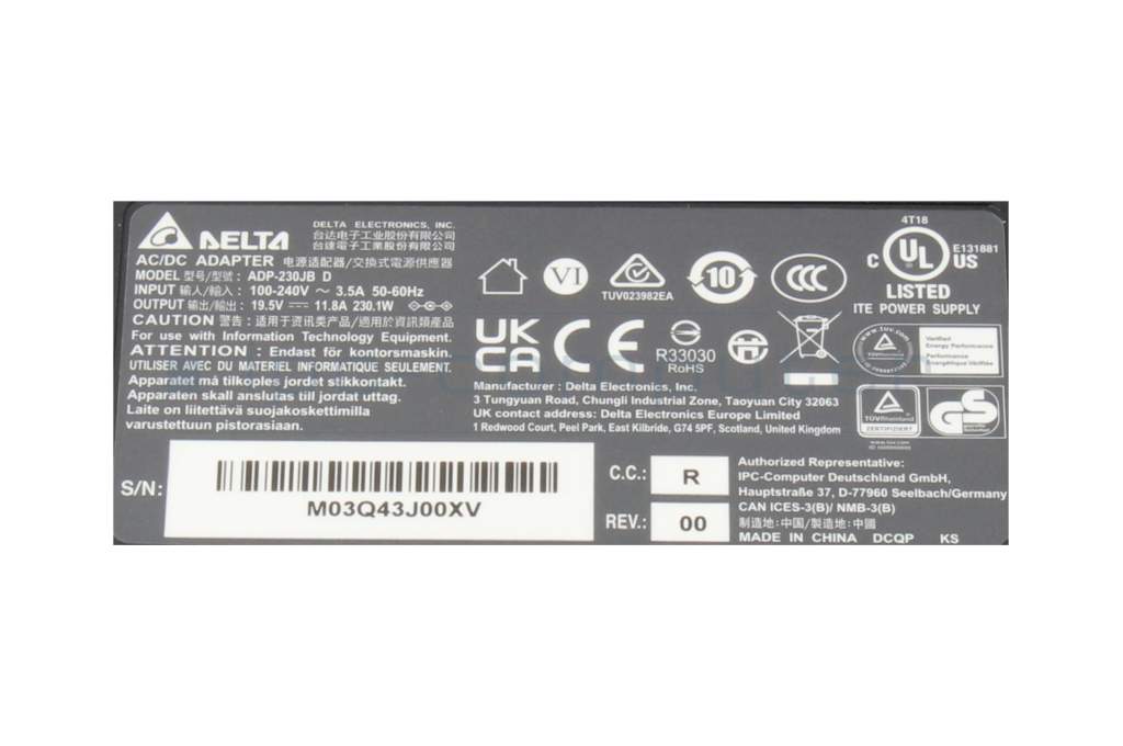 Acer ConceptD 5 Pro (CN516-72P) AC-adapter 230.0 Watt from Delta Electronics