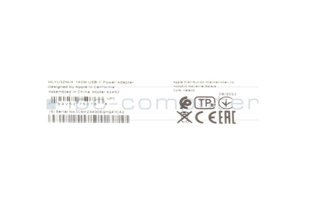 Apple Mac15,11 (16" 2023) original USB-C GaN-AC-adapter 140.0 Watt white