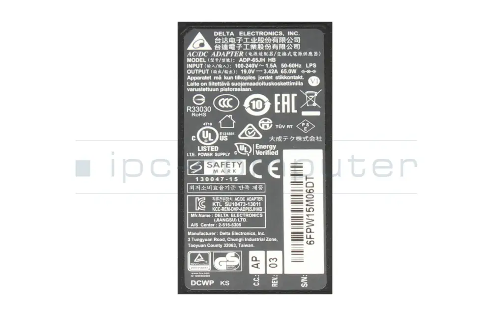 Asus A75VM AC-adapter 65.0 Watt from Delta Electronics