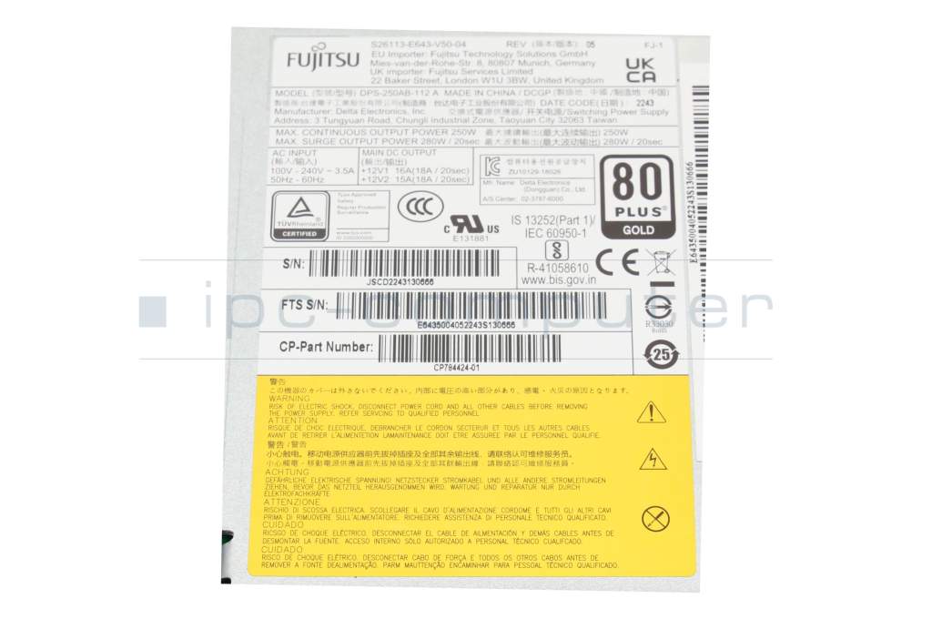 Desktop-PC power supply 250 Watt original for Fujitsu Esprimo D7013