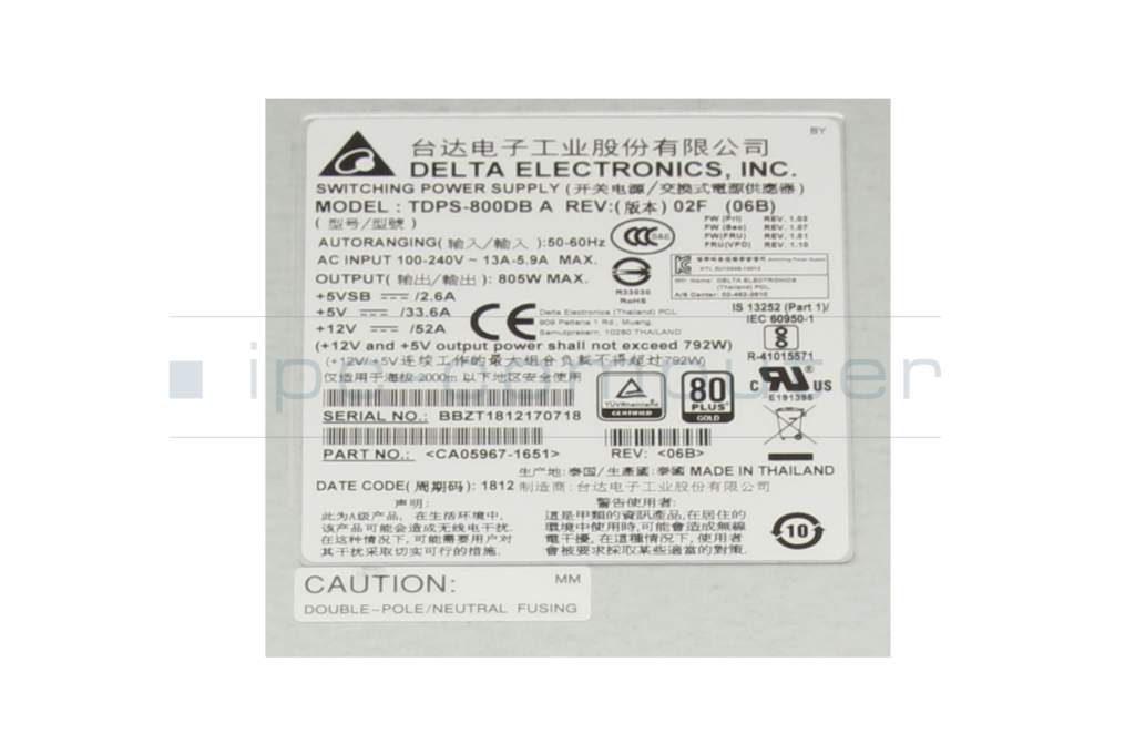 Server power supply 805 Watt original for Fujitsu Eternus DX100 S4