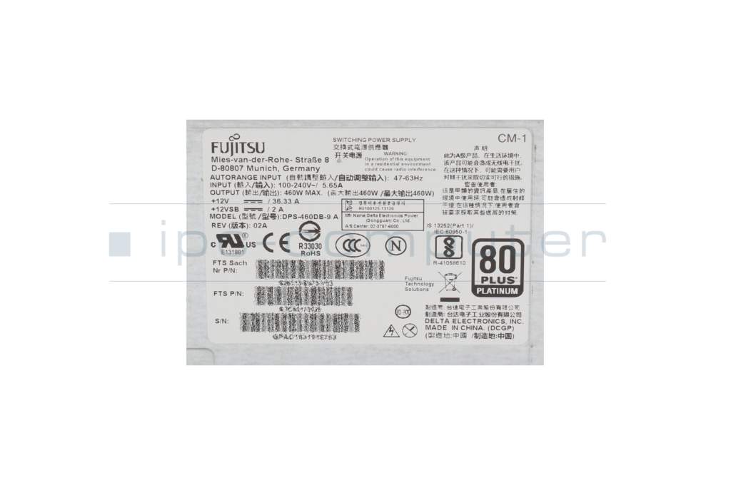 Server power supply 450 Watt refurbished for Fujitsu Primergy RX4770 M5