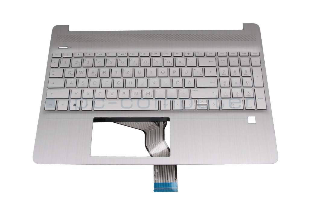Keyboard incl. topcase DE (german) silver/silver (Fingerprint) original suitable for HP 15s-fq5000