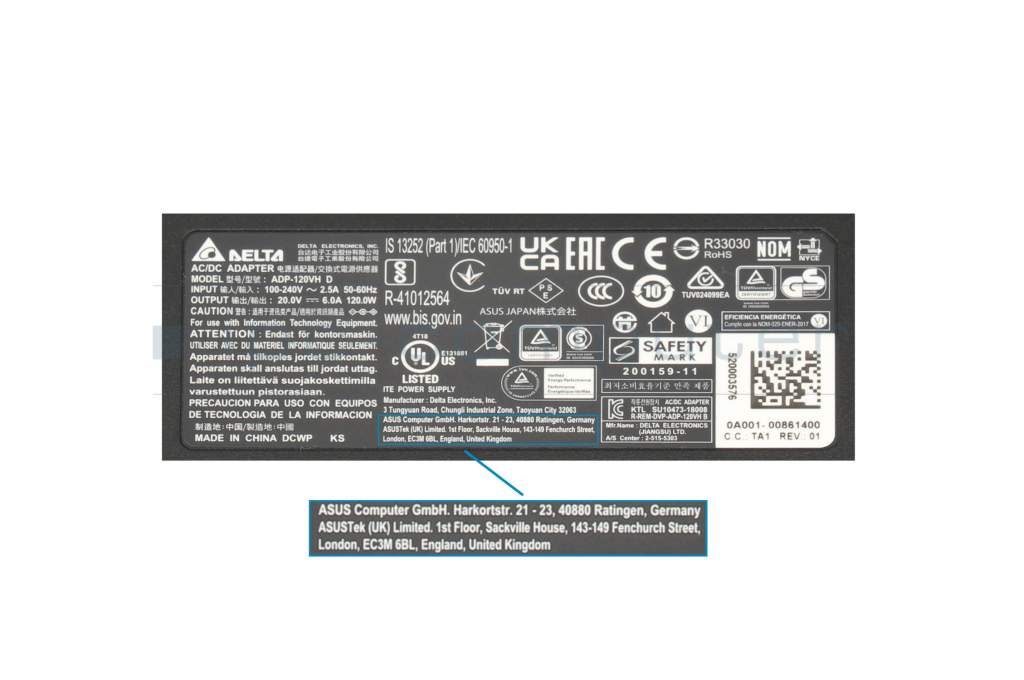 0A001-00067300 original Asus AC-adapter 120.0 Watt edged Straight plug
