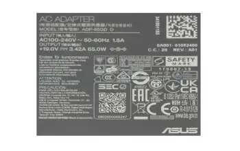 0A001-01053500 original Asus AC-adapter 65.0 Watt EU wallplug normal