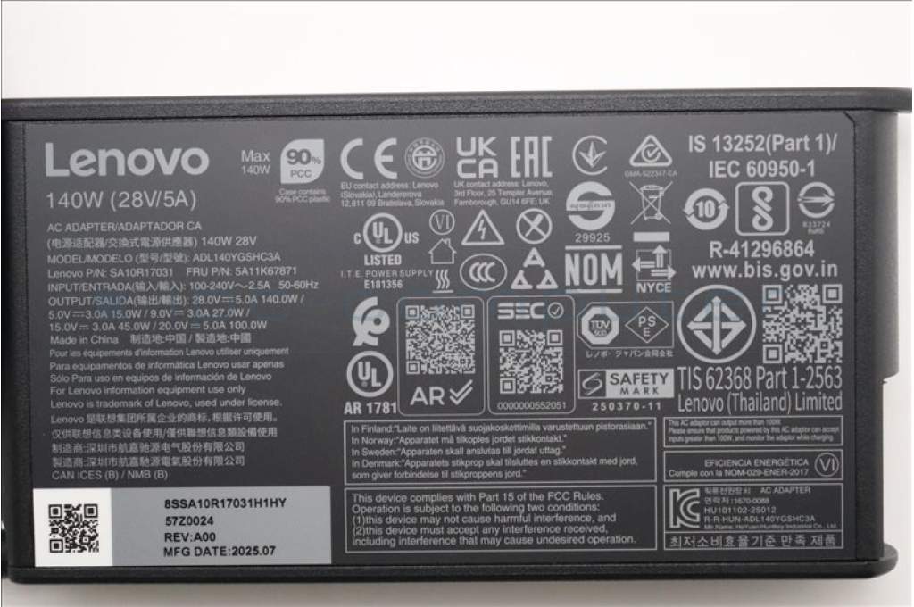 Lenovo 5A11K67871 AC_ADAPTER PD,140W,28/20~5V,3P,WW,HTK