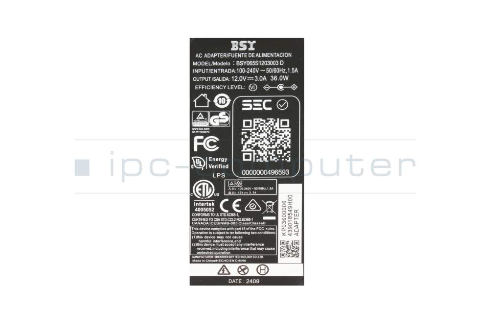 KP03600006 original Acer AC-adapter 36.0 Watt edged