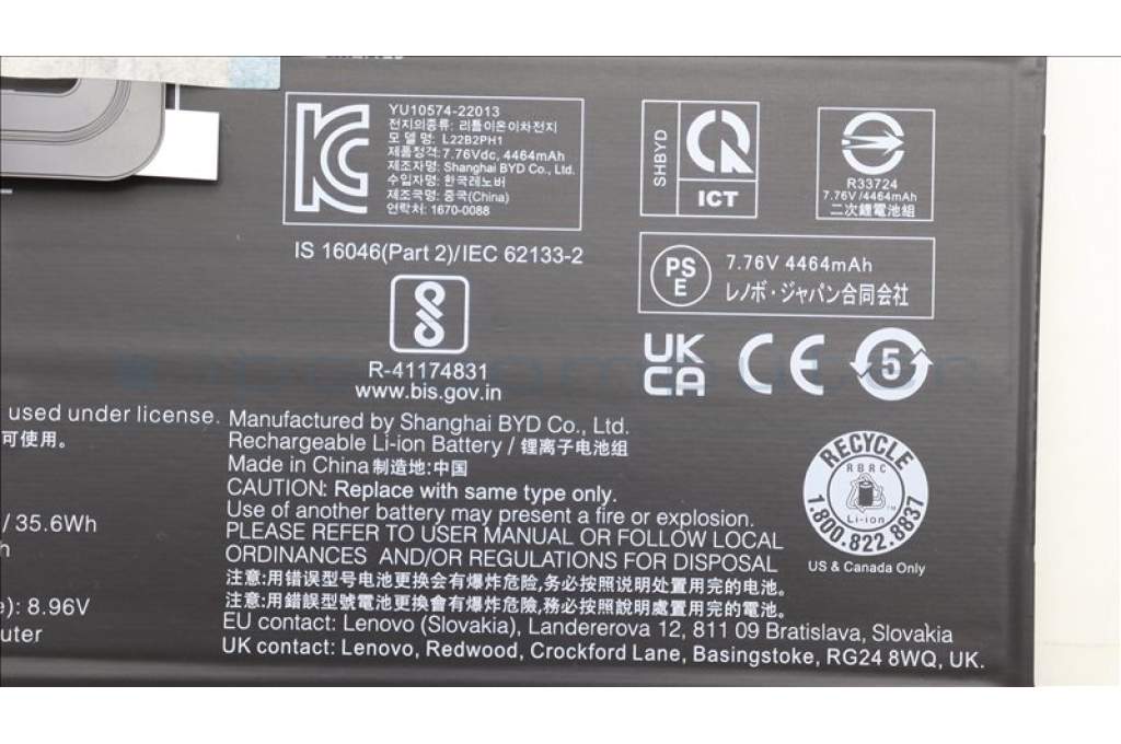 Lenovo 5B11K59566 BATTERY 2cell 35.6Wh 7.76V L22B2PH1 BYD