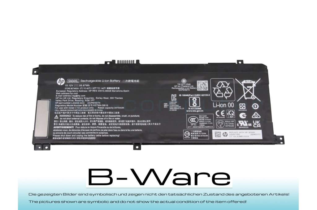 B-goods - This is a technically flawless spare part/accessory item from a customer return or an item with stock marks. The item may have optical defects such as signs of use, scratches, abrasion or similar, but these do not affect the function. The batteries may also have a broken or bent attachment point. The original packaging may be damaged or not present. The pictures shown are symbolic and do not show the actual condition of the item offered!