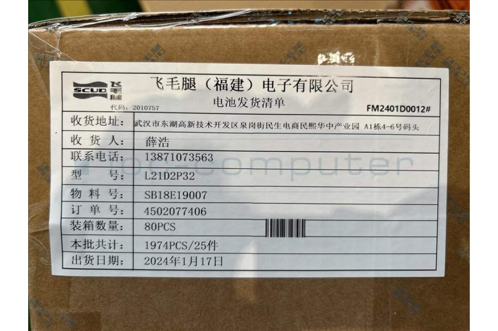 SCUD-A-R L21D2P32 3.87V24.7Wh 2cell