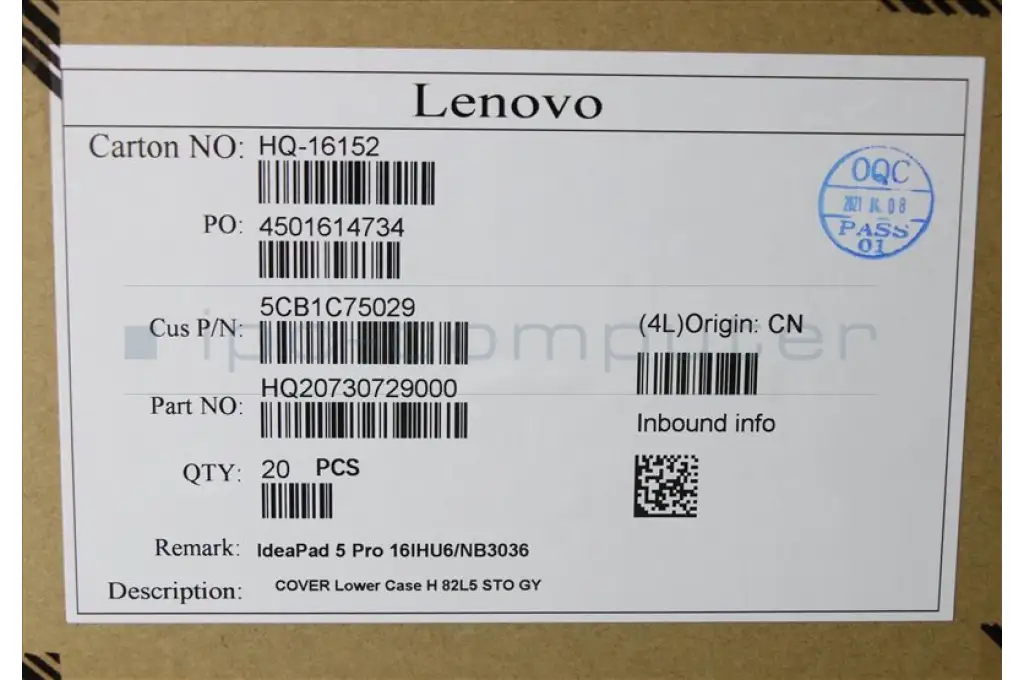Lenovo 5CB1C75029 COVER Lower Case H 82L5 STO GY