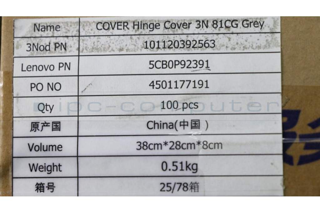 Lenovo 5CB0P92391 COVER Hinge Cover 3N 81CG Grey