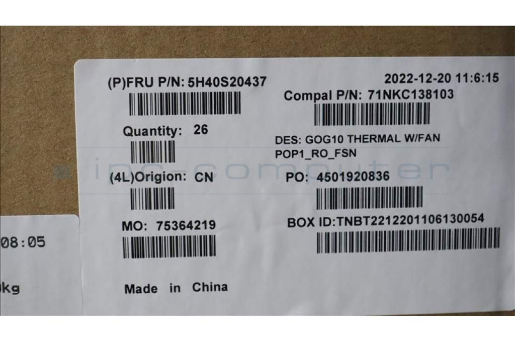 Lenovo 5H40S20437 HEATSINK Thermal module C82K1 P0P1_ROFSN