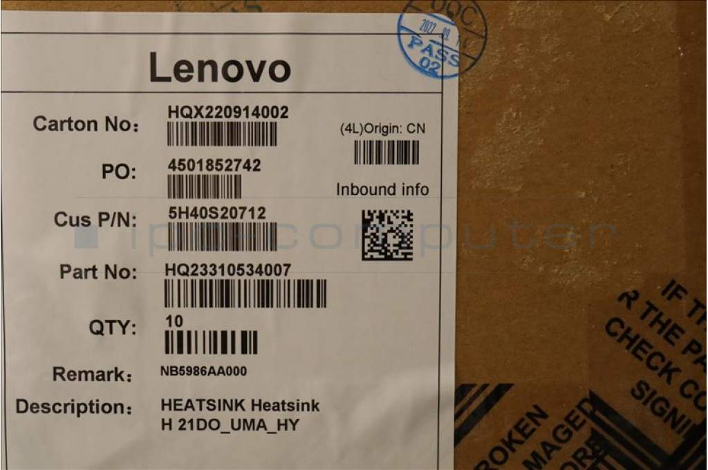 Lenovo 5H40S20712 HEATSINK Heatsink H 21DO_UMA_HY