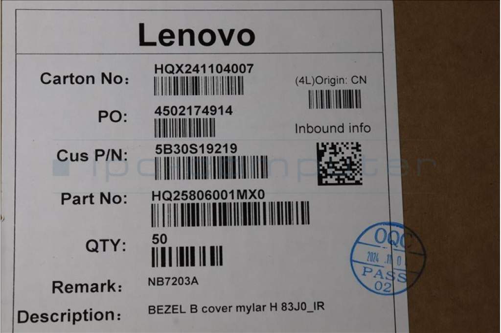 Lenovo 5B30S19219 BEZEL B cover mylar H 83J0_IR