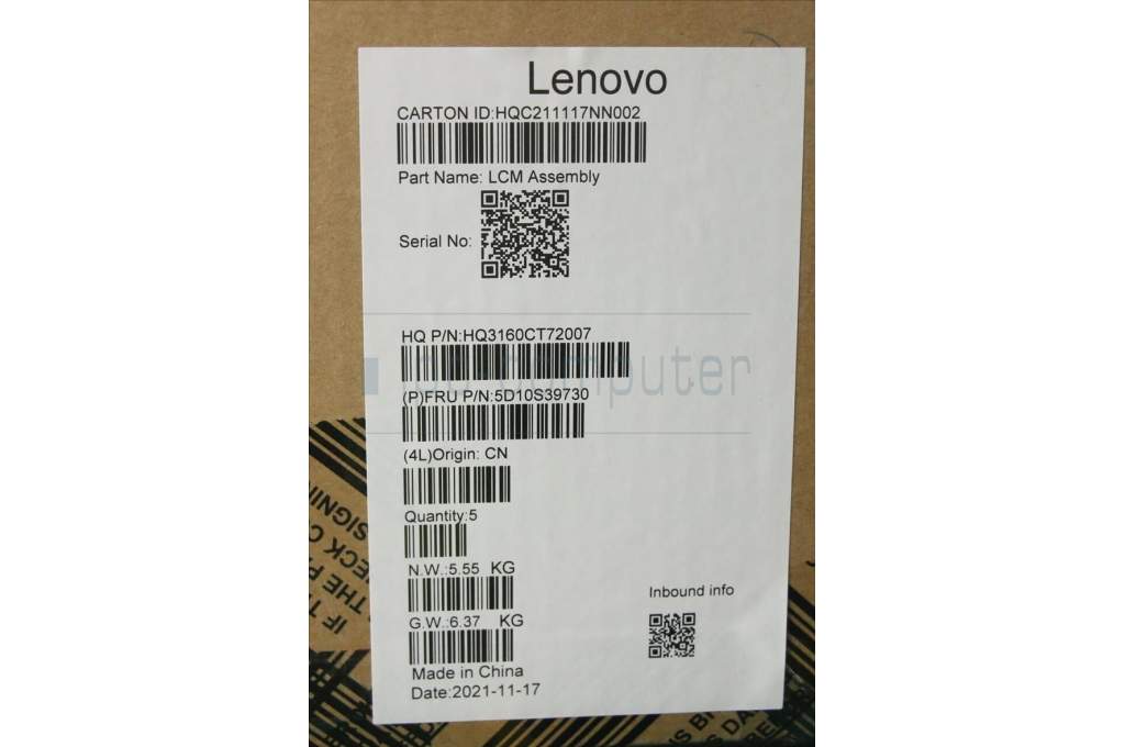 Lenovo 5D10S39730 DISPLAY LCD MODULE YogaDisSG 120HZ_144HZ