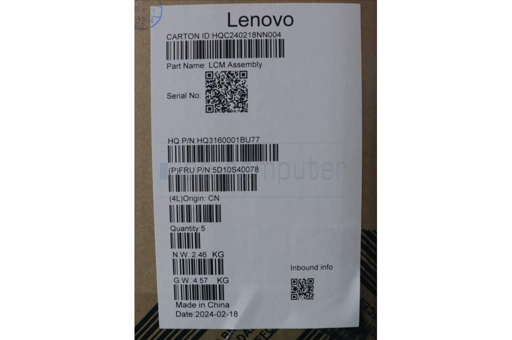 Lenovo 5D10S40078 Lenovo LCD Module,14",HD,Touch,Glare,IPS,300nit,45% NTSC