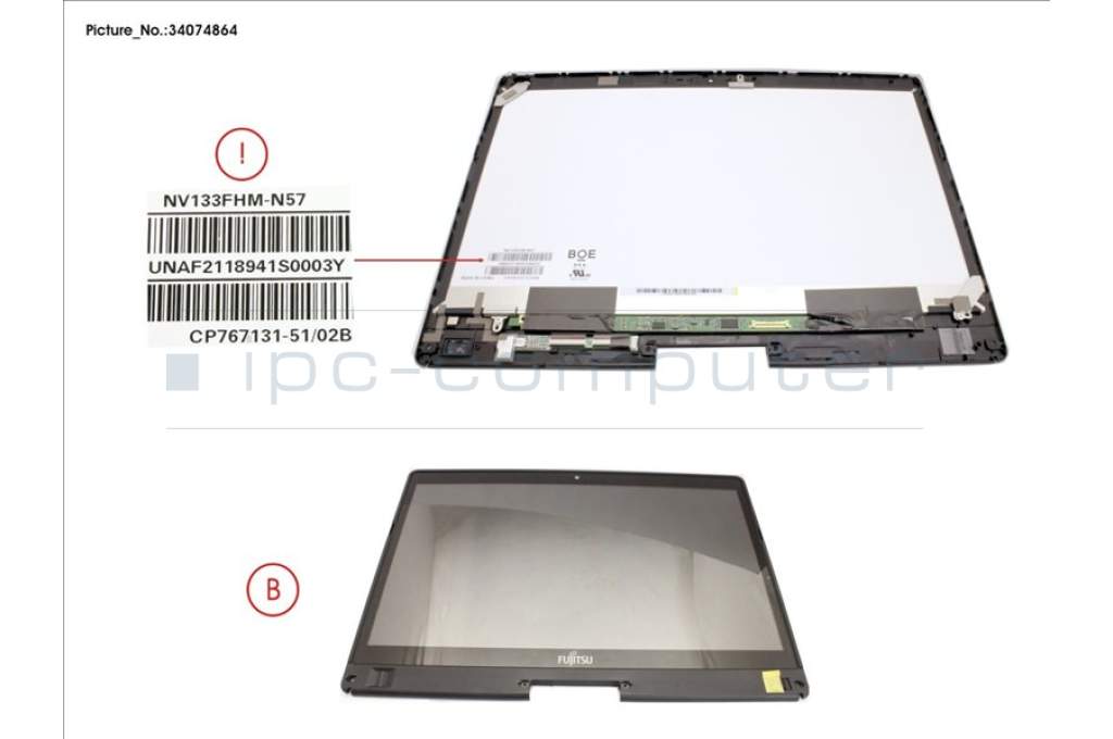 Fujitsu FUJ:CP784932-XX LCD ASSY FOR REARCAM, AG INCL.TP AND DIG