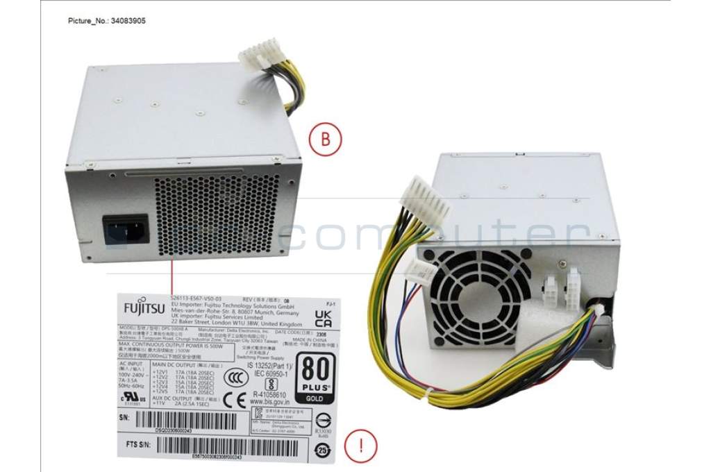 Fujitsu S26113-E567-V50-3 PSU 500W 90+ GOLD