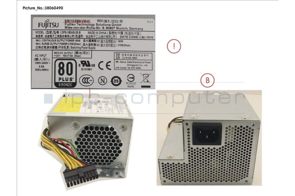 Fujitsu S26113-E600-V50-1 PSU 180W
