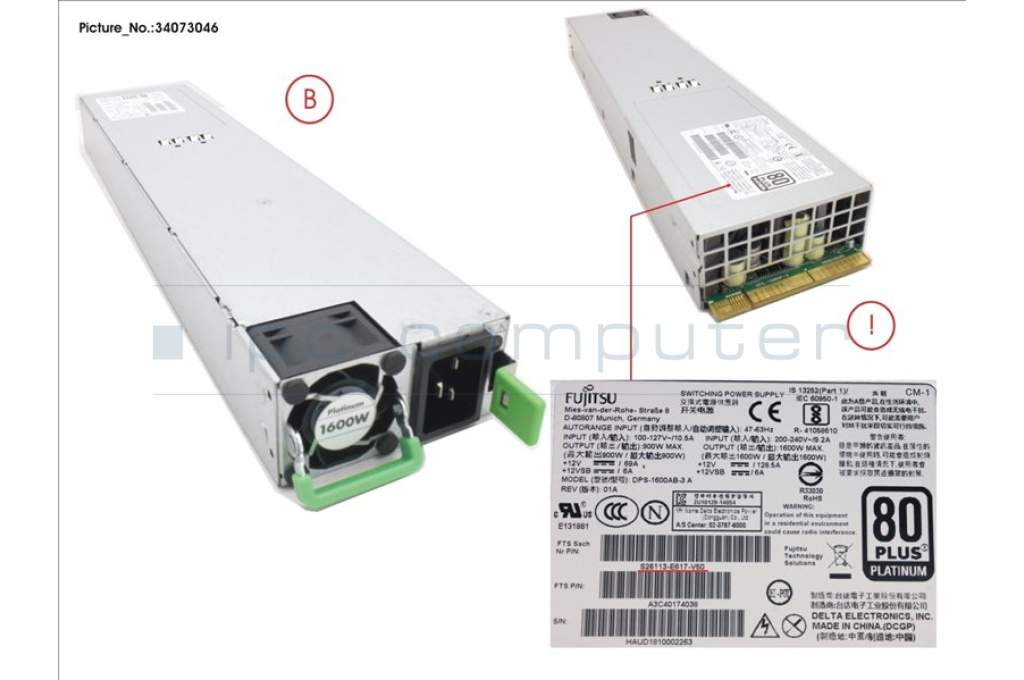 Fujitsu S26113-E617-V50 PSU 1X 1600W PLATINUM HP CX400 M1