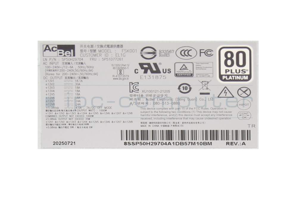 SP50H29704 original Lenovo Desktop-PC power supply 1000 Watt