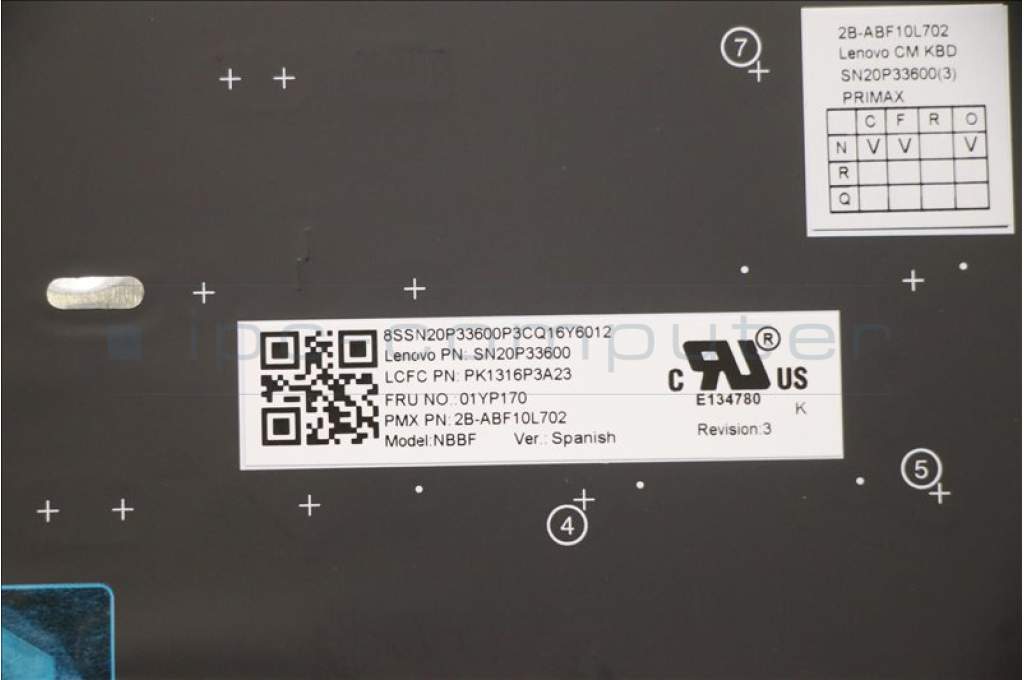 Lenovo 01YP170 NB_KYB FRU COMO SK,PMX,KB,BK,ES