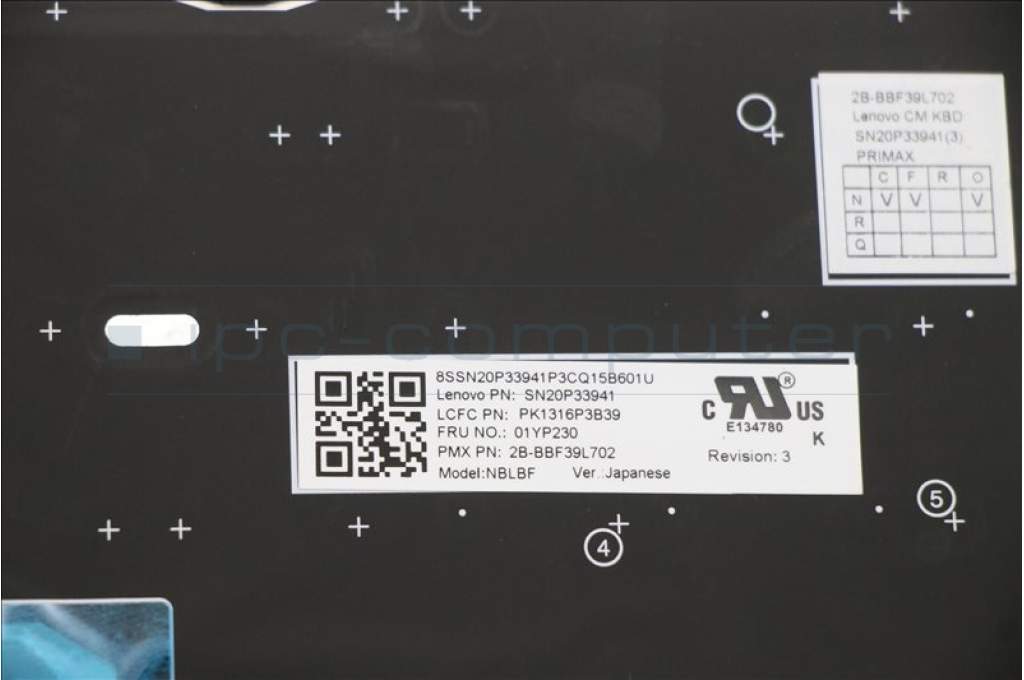 Lenovo 01YP230 NB_KYB FRU COMO SK,PMX,KB-BL,BK,JP