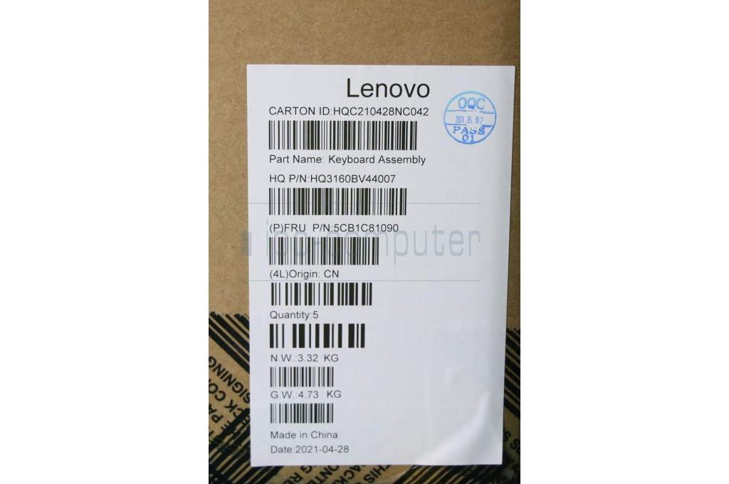 Lenovo 5CB1C81090 COVER Upper Case ASM_EURO ENG H82L9CLO