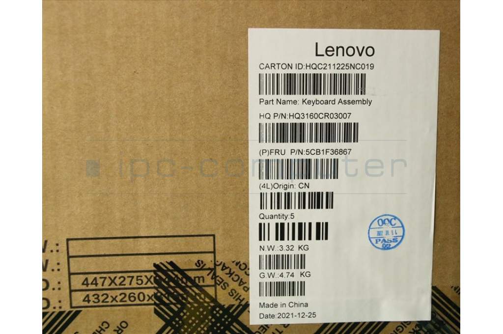 Lenovo 5CB1F36867 COVER Upper Case ASM_SPA H 82QQ SG_DIS
