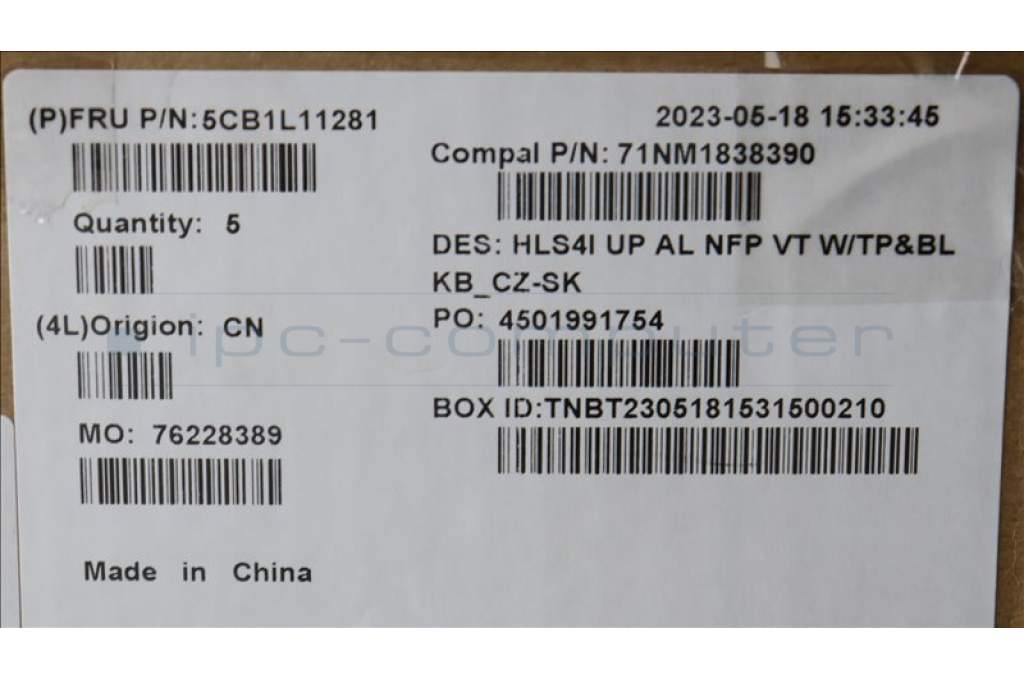 Lenovo 5CB1L11281 COVER UpCase_CZE/SLK C82XD NFP VT BL AL