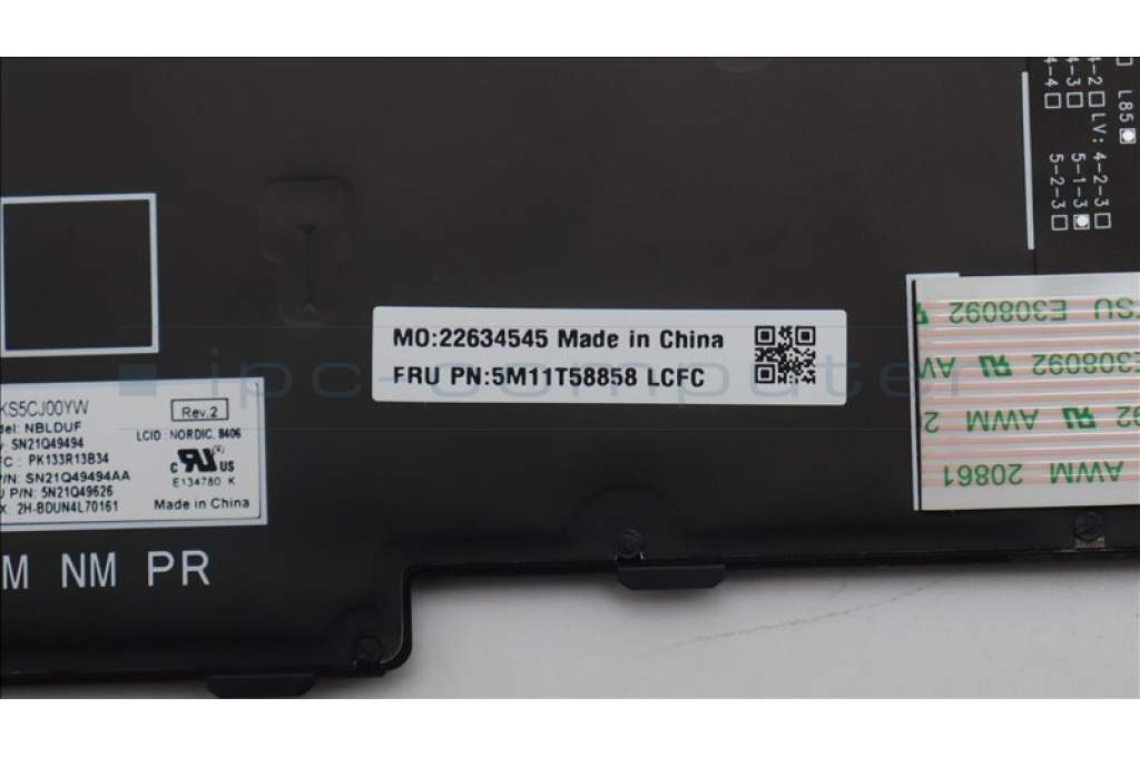 Lenovo 5M11T58858 MECH_ASM BKLT KB NP BK NORDIC PMX