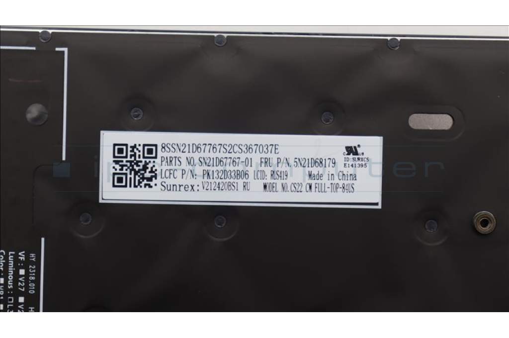 Lenovo 5N21D68179 NB_KYB CS22 FL TOP,BK-BL,SRX,RUS