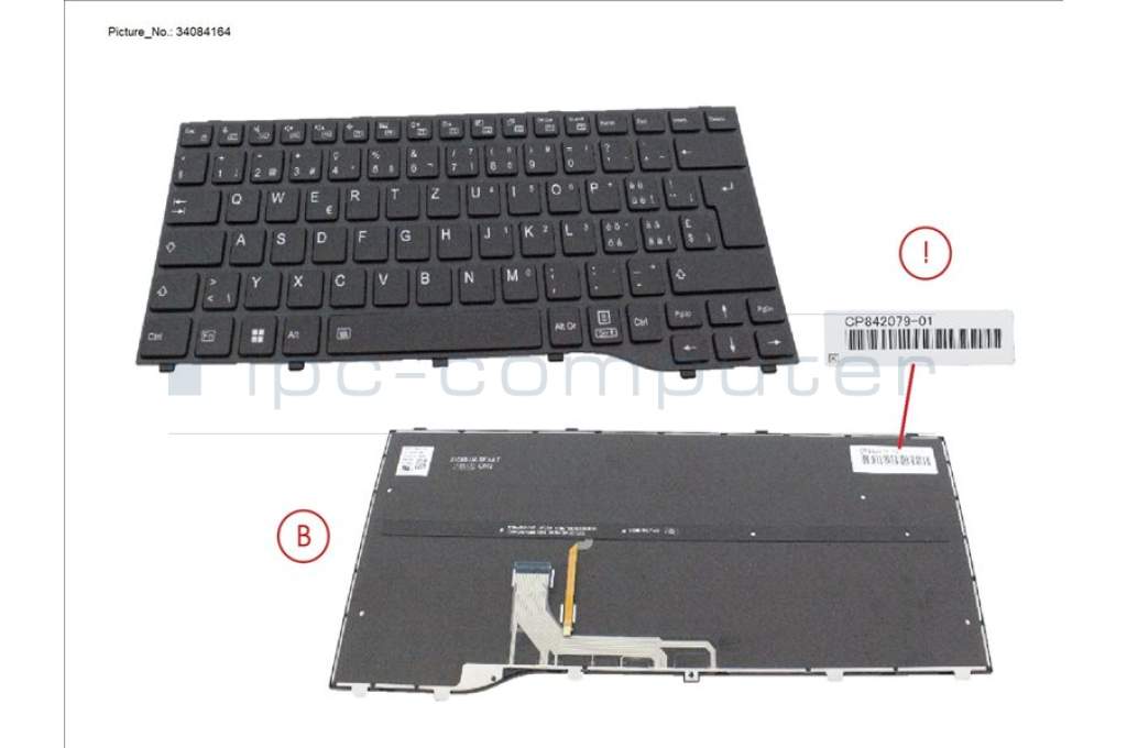 Fujitsu CP842079-XX KEYBOARD BLACK W/ BL SWISS (NEW_FN)
