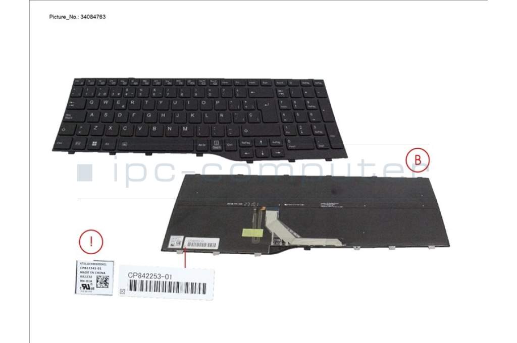Fujitsu CP842253-XX KEYBOARD BLACK W/ BL SPAIN (NEW_FN)