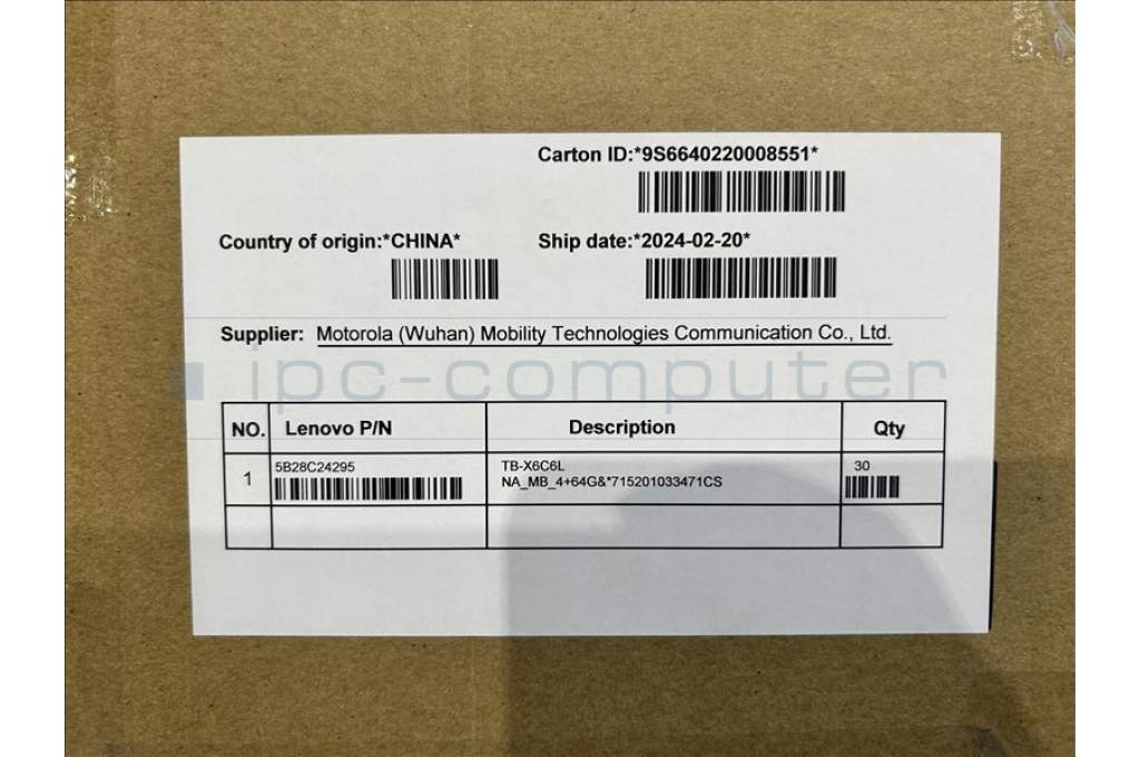 Lenovo 5B28C24295 TB-X6C6L NA_MB_4+64G&*715201033471CS