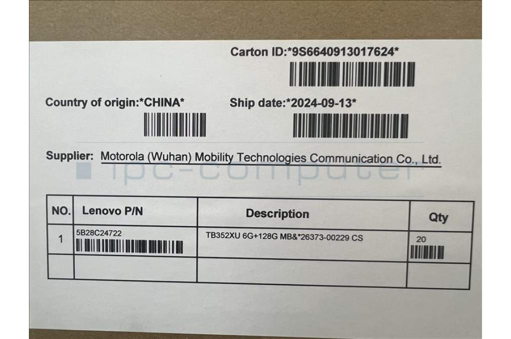 Lenovo 5B28C24722 TB352XU 6G+128G MB&*26373-00229 CS