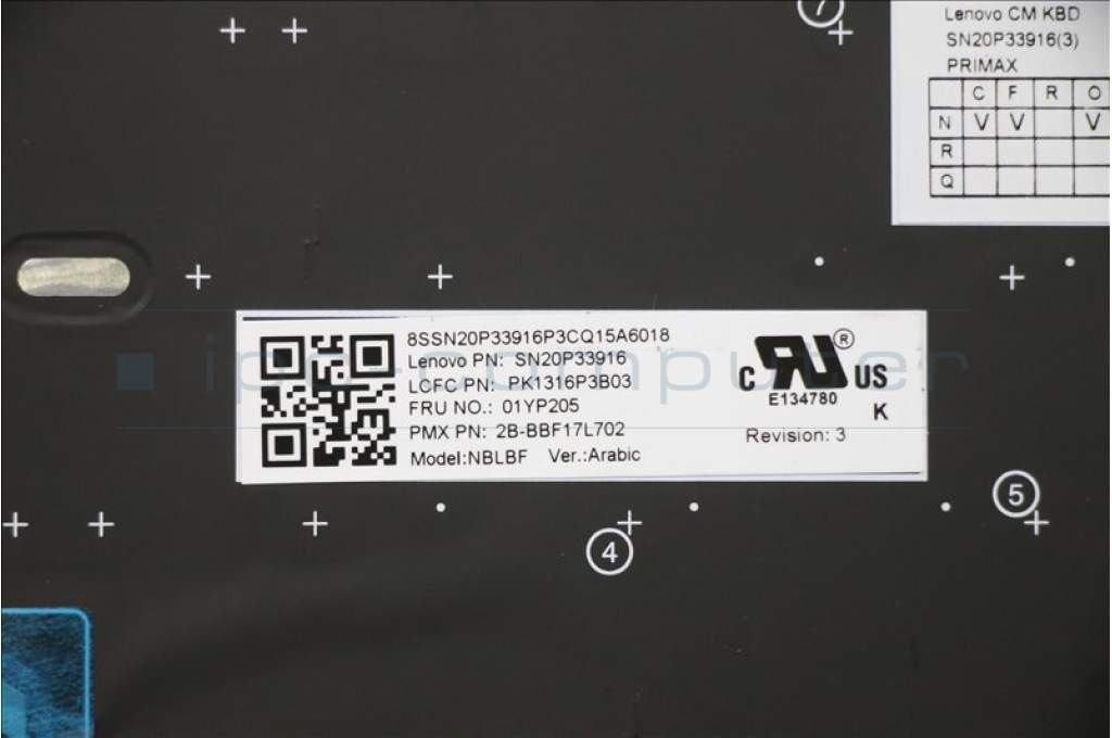 Lenovo 01YP205 Keyboard Internal, Arabic, Black, Backlight, US