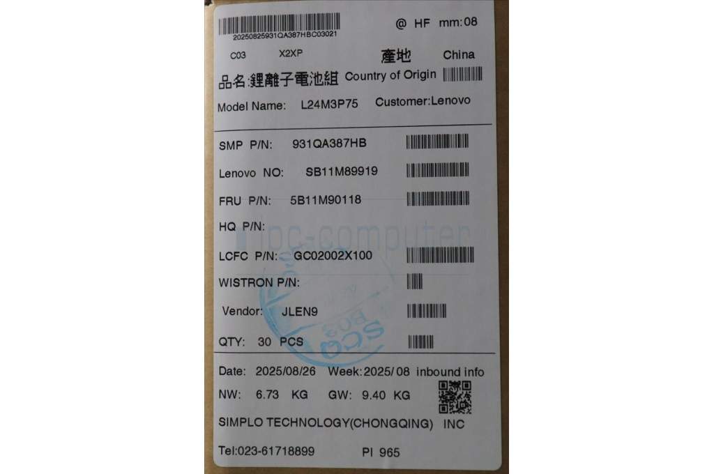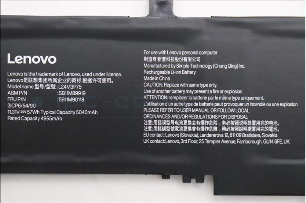 Lenovo 5B11M90118 Lenovo BATTERY, 11.31V, 57Wh, 3cell