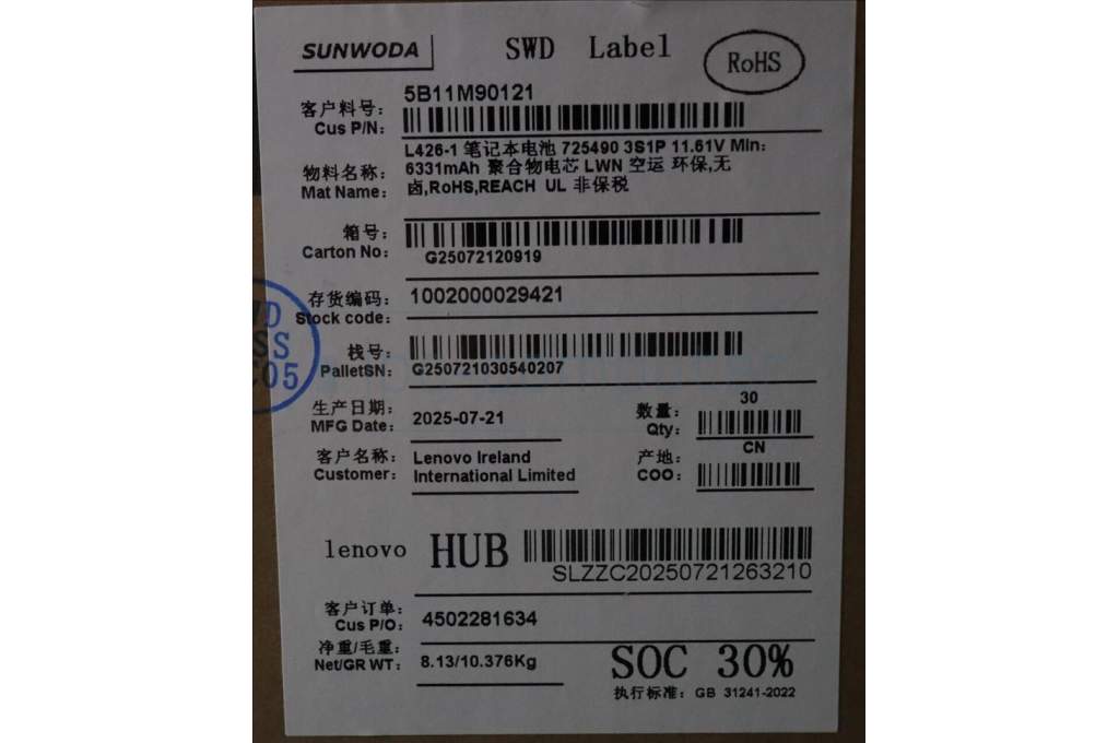 Lenovo 5B11M90121 Lenovo BATTERY, 11.61V, 75Wh, 3cell