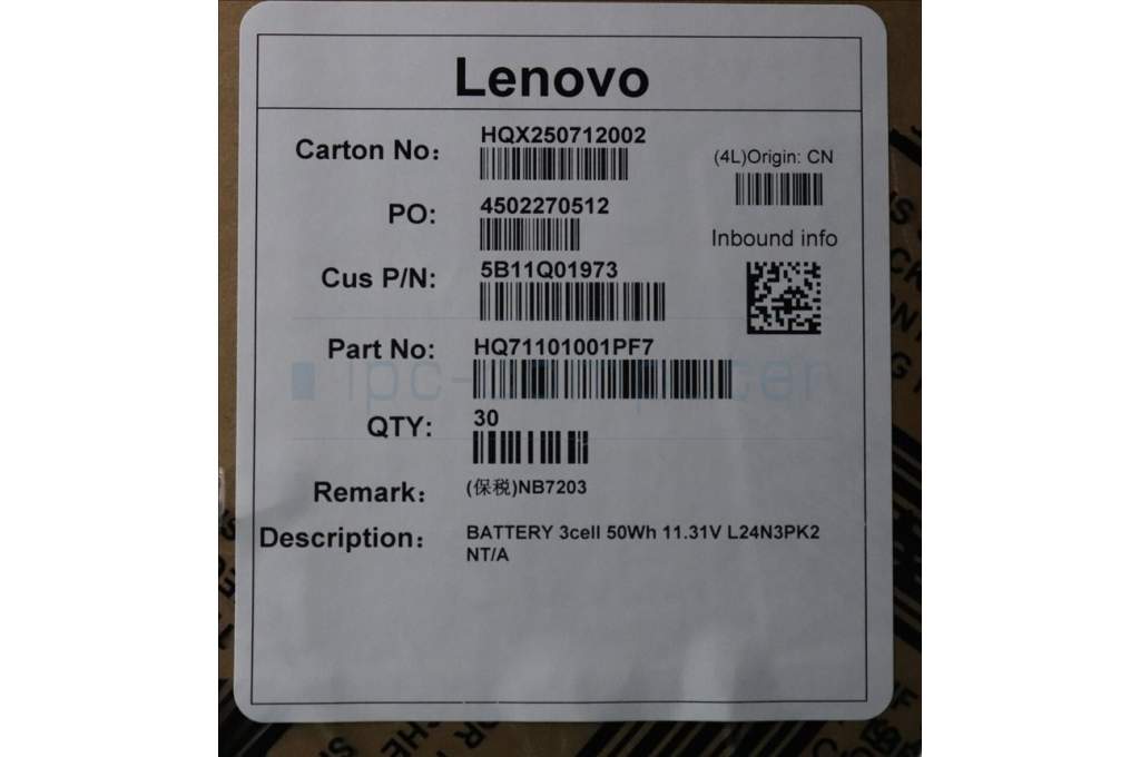 Lenovo BATTERY, 11.31V, 50Wh, 3cell