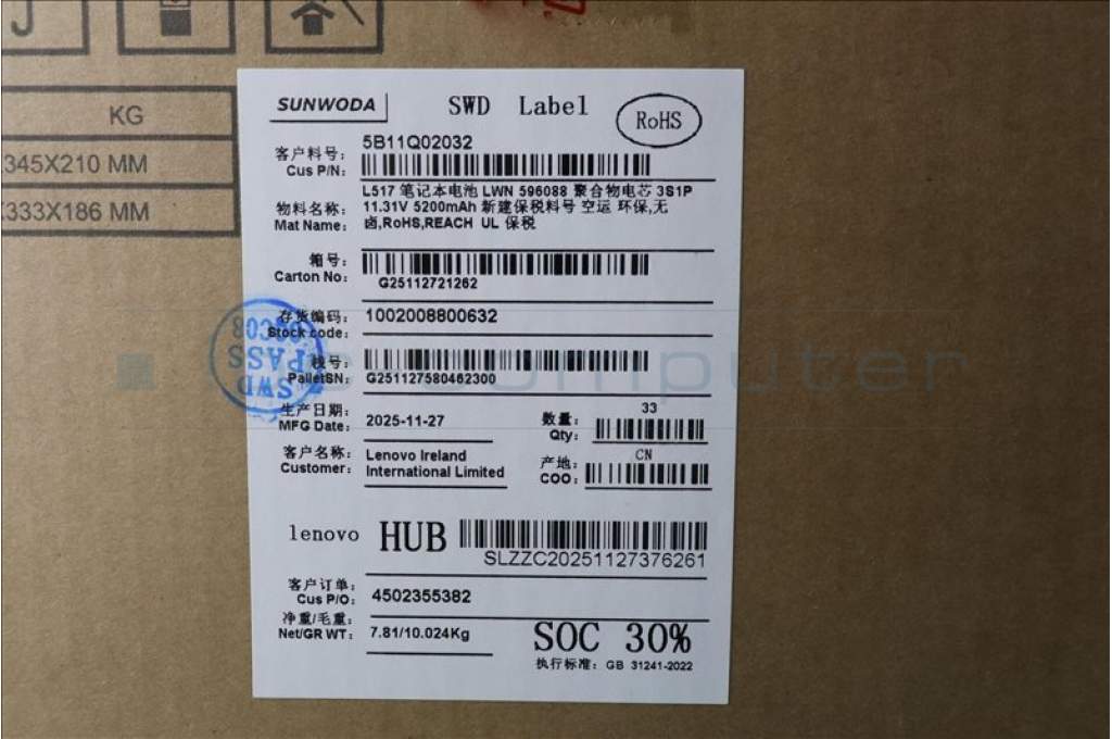 Lenovo 5B11Q02032 Lenovo BATTERY, 11.31V, 60Wh, 3cell
