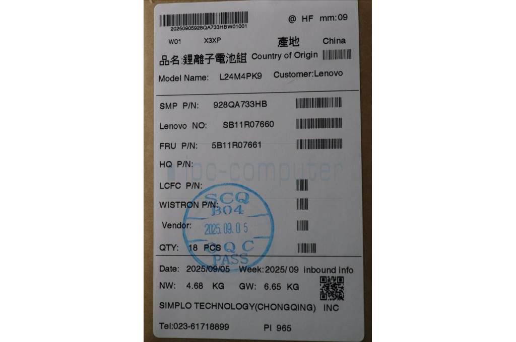Lenovo 5B11R07661 Lenovo BATTERY, 15.6V, 74Wh, 4cell