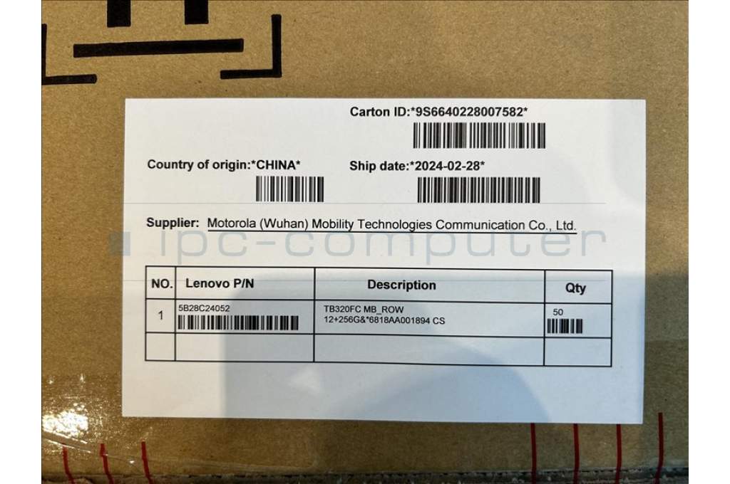 Lenovo 5B28C24052 TB320FC MB_ROW 12+256G&*6818AA001894 CS
