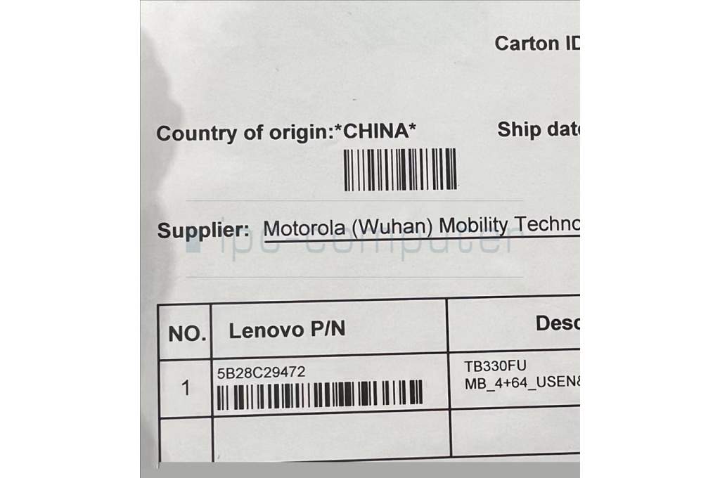Lenovo 5B28C29472 TB330FU MB_4+64_USEN&*HQ3160001Q850 CS