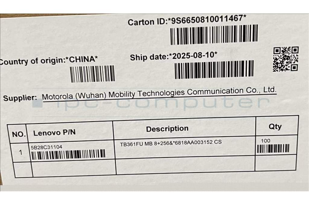Lenovo 5B28C31104 TB361FU MB 8+256&*6818AA003152 CS