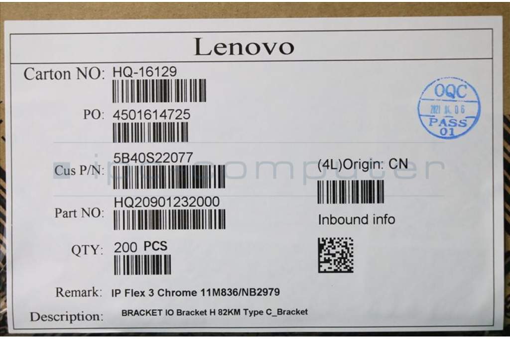 Lenovo 5B40S22077 BRACKET IO Bracket H 82KM Type C Bracket