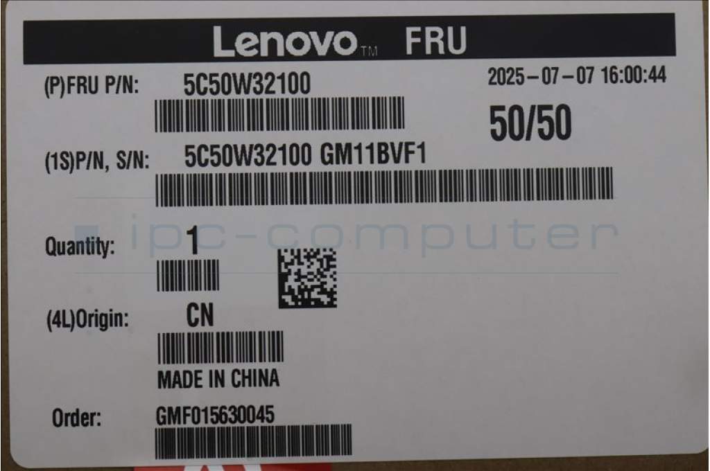 Lenovo 5C50W32100 CARDPOP BLD Tiny11 BTB TBT4 Card no PD