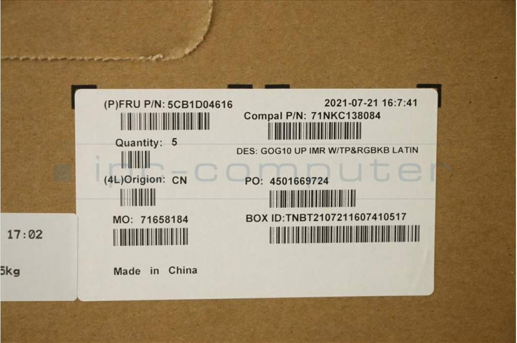 Lenovo 5CB1D04616 COVER Upper Case ASM_LA SPA C 82K1 RGB